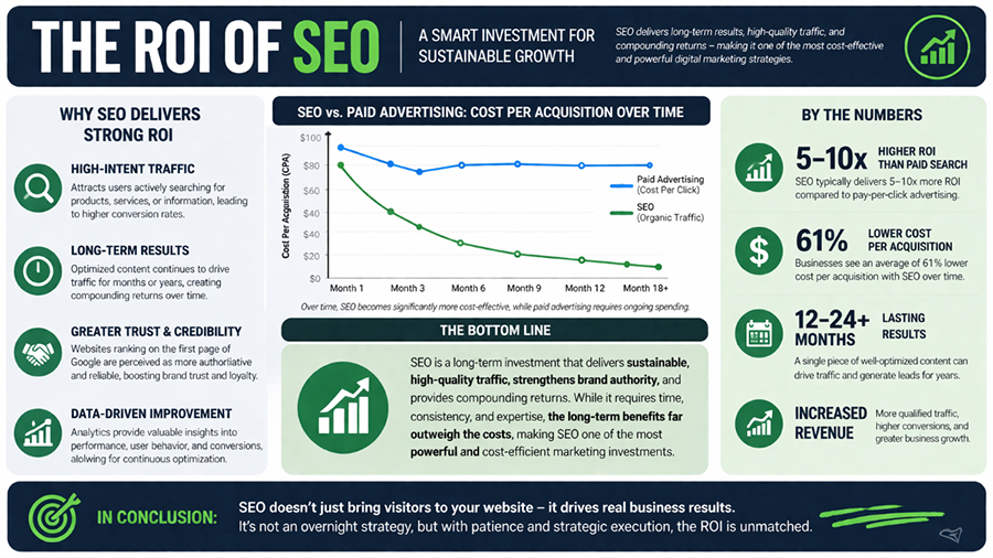 The ROI of SEO lies in its ability to generate sustainable, high-quality traffic, improve brand authority, and deliver long-term value. While it demands patience and strategic execution, SEO remains one of the most powerful and cost-efficient digital marketing investments a business can make.